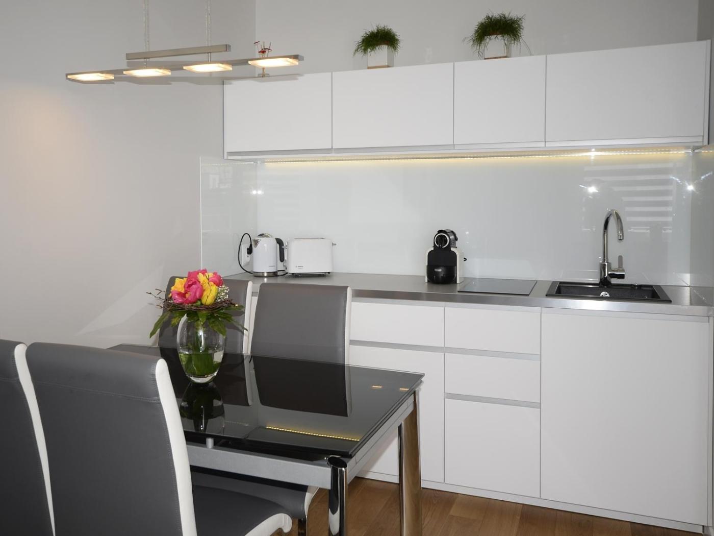 Apartament z 1 sypialnią. This apartment includes 1 living room, 1 separate bedroom and 1 bathroom with a walk-in shower and free toiletries. Meals can be prepared in the kitchen, which is fitted with a stovetop, a refrigerator, kitchenware and a toaster. The apartment offers a flat-screen TV, a washing machine, soundproof walls, a tea and coffee maker as well as city views. The unit has 2 beds. Apartament - 4 osobowy. Powierzchnia pokoju ok.: 40 mkw.