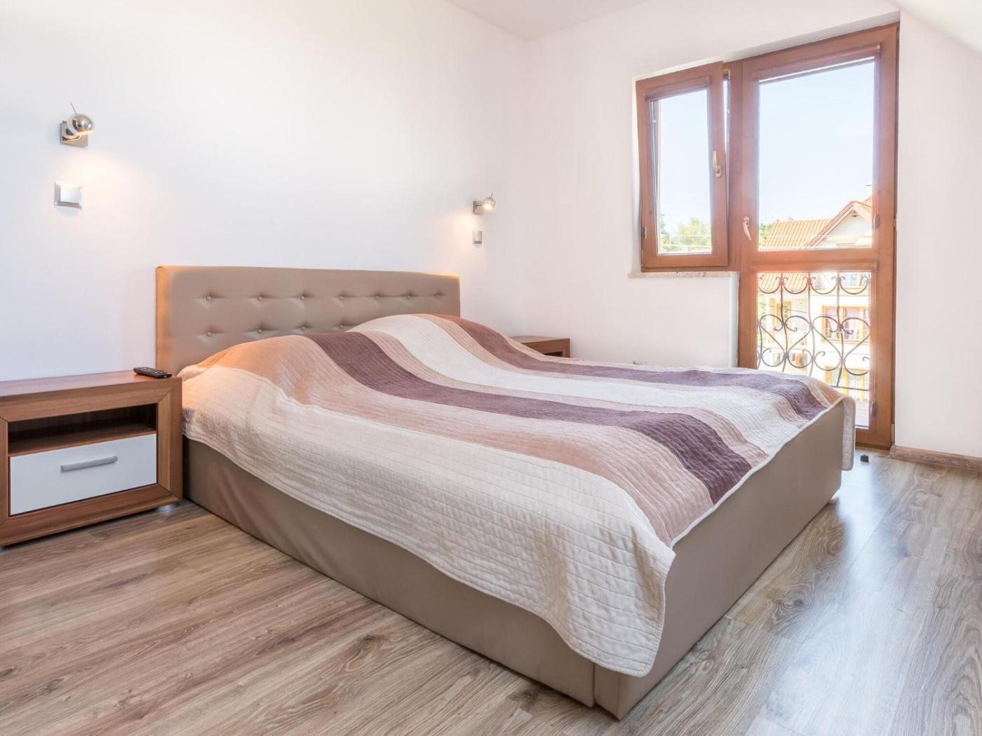 Apartament z 1 sypialnią. This apartment comprises 1 living room, 1 separate bedroom and 1 bathroom with a bath and a hairdryer. Guests will find a refrigerator and an electric kettle in the kitchen. The apartment also provides guests with a barbecue. Featuring a balcony with lake views, this apartment also provides a seating area and a TV with cable channels. The unit offers 4 beds. Apartament - 5 osobowy. Powierzchnia pokoju ok.: 33 mkw.
