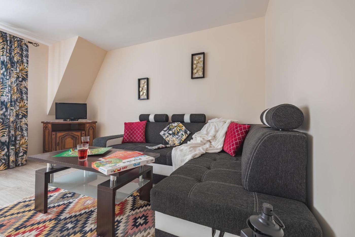 Studio z balkonem. The studio offers a wardrobe, heating, as well as a private bathroom boasting a shower and a hairdryer. This studio features a flat-screen TV. The unit has 4 beds. Studio - 6 osobowy. Powierzchnia pokoju ok.: 22 mkw.