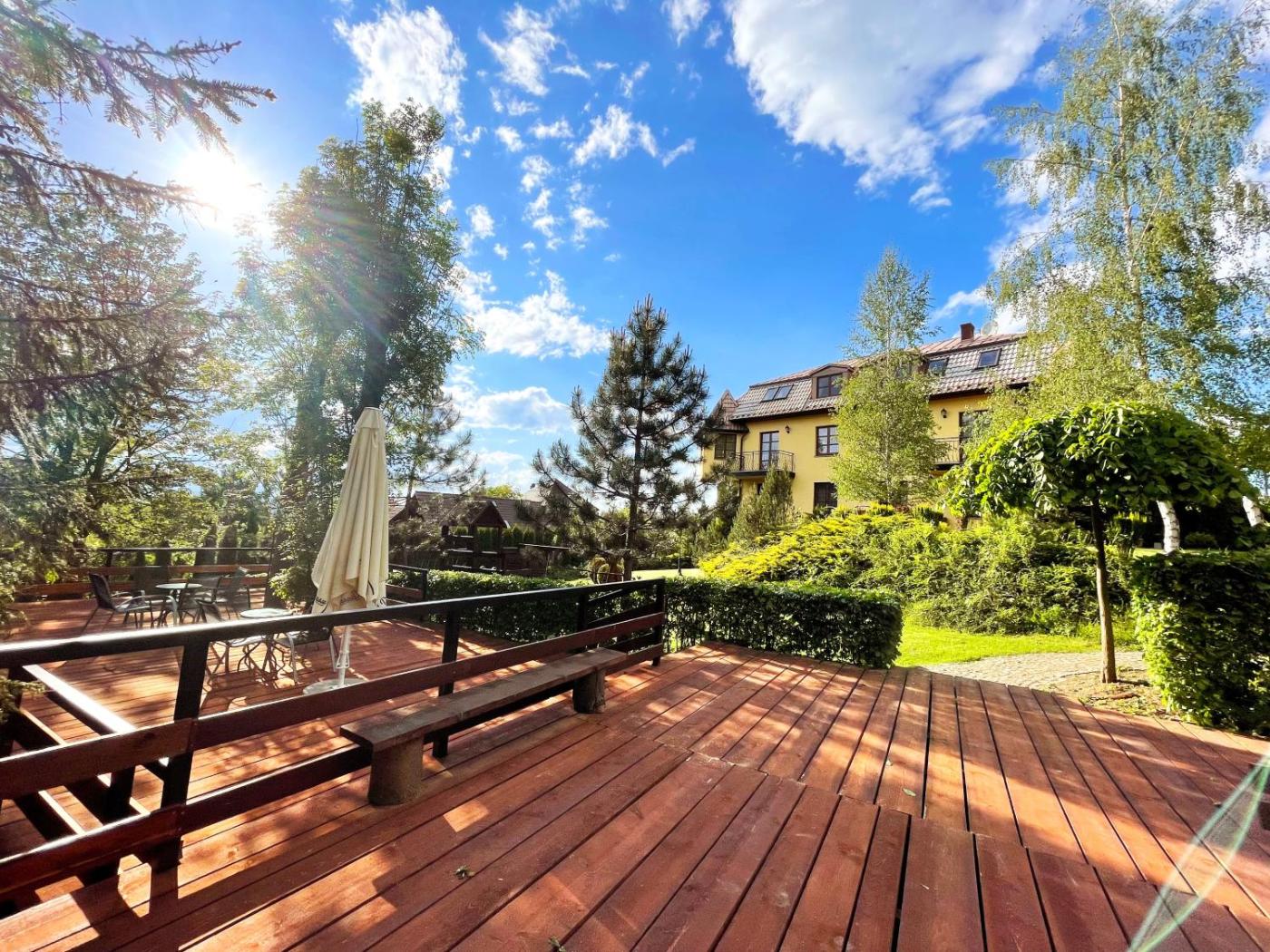 Pokój Trzyosobowy typu Standard. This triple rooms standout feature is the pool with a view. The triple room offers soundproof walls, a wardrobe, as well as a private bathroom featuring a shower and a hairdryer. The triple room provides an electric kettle, a barbecue, a high chair for children, a flat-screen TV, as well as garden views. The unit offers 2 beds. Pokój Trzyosobowy - 4 osobowy. Powierzchnia pokoju ok.: 24 mkw.