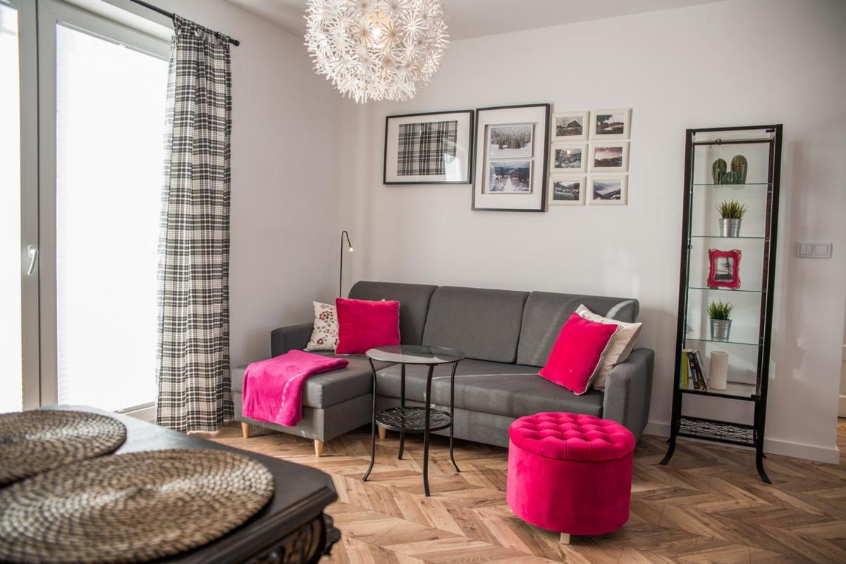 Apartament. Boasting a private entrance, this apartment includes 1 living room, 1 separate bedroom and 1 bathroom with a shower and a hairdryer. In the fully equipped kitchen, guests will find a stovetop, a refrigerator, a dishwasher and a microwave. The unit has a washing machine, mountain views, a terrace and winechampagne is offered for guests. The unit has 2 beds. Apartament - 4 osobowy. Powierzchnia pokoju ok.: 49 mkw.