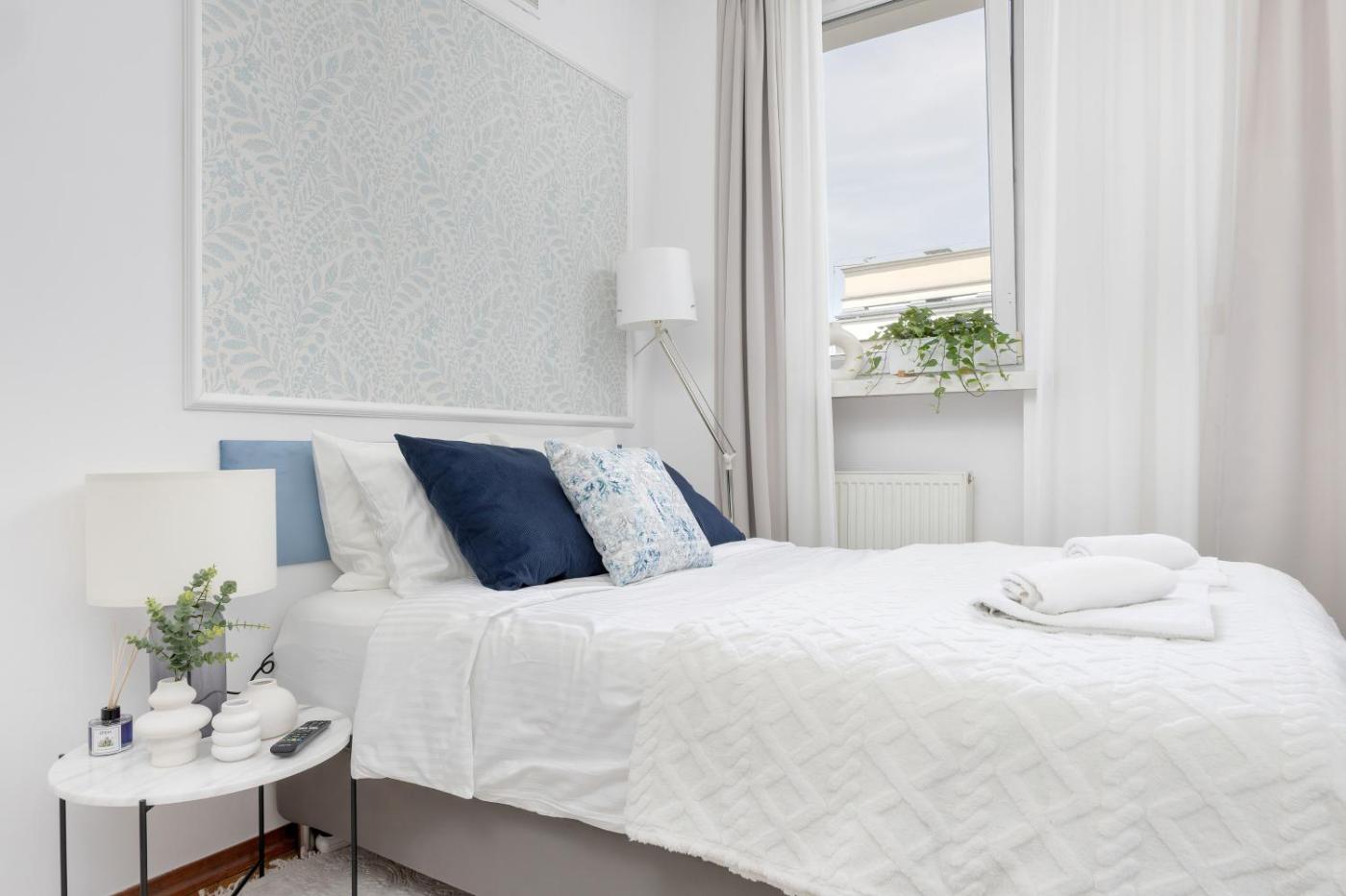 W apartamencie zapewniono sypialnię (1), kuchnię z lodówką i mikrofalówką, a także łazienkę (1) z prysznicem, bezpłatnym zestawem kosmetyków oraz pralką. W apartamencie zapewniono ręczniki i pościel.